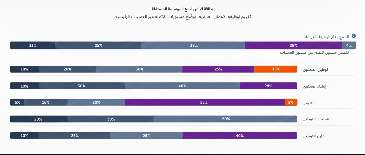 إحدى نتائج هذه الجهود هي بطاقة قياس المؤسسة المستقلة الجديدة، والتي تمكّننا من تقييم العمليات والوظائف التجارية بناءً على مستوى استقلاليتها. تتراوح هذه المستويات من العمليات اليدوية بالكامل دون أي أتمتة، إلى العمليات المدعومة بالذكاء href="/ae/ حيث يتعاون البشر مع الذكاء href="/ae/، وصولًا إلى العمليات المستقلة التي تُنجز من دون أي تدخل بشري.