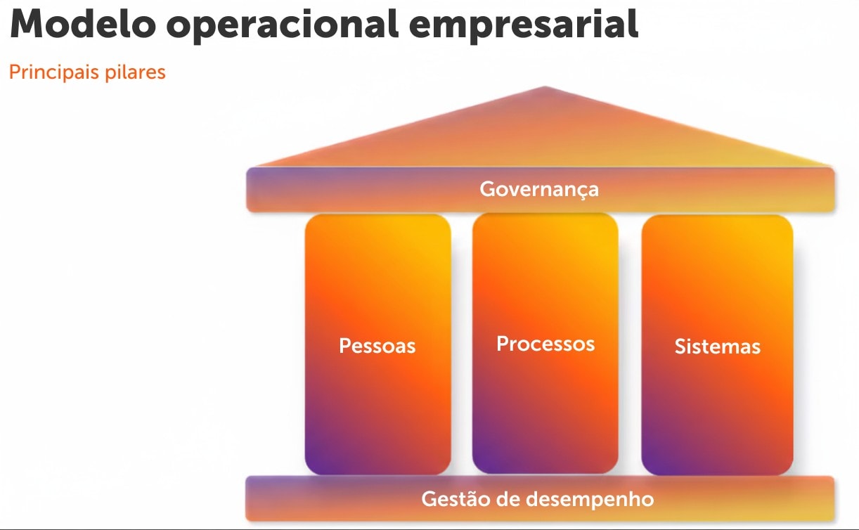 Também atualizamos a estrutura de pessoas-processos-tecnologia para um modelo operacional empresarial de pessoas-processos-sistemas, apoiado pela gestão de desempenho e controlado por meio da governança. Veja como os diferentes elementos se adaptam à realidade atual habilitada pela IA: