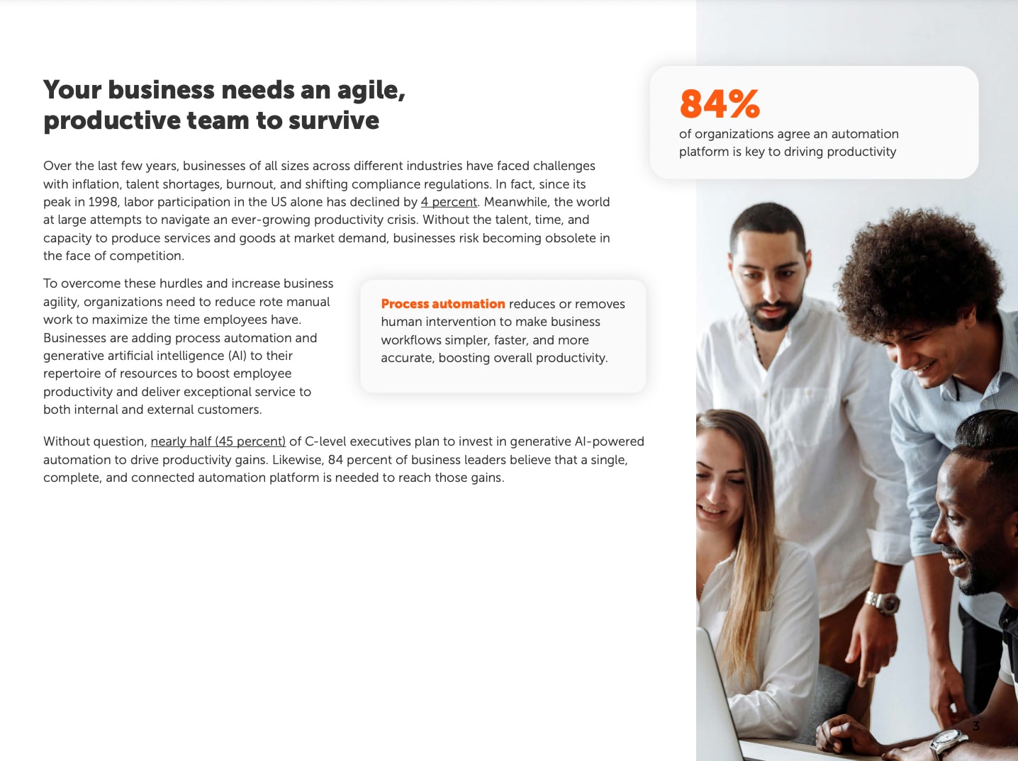 Learn how enterprises are putting AI to work and improving productivity by up to 50% with AWS and the Automation Success Platform. You'll learn how to streamline operations by deploying AI-powered automation, understand solutions tailored to your industry, and more.