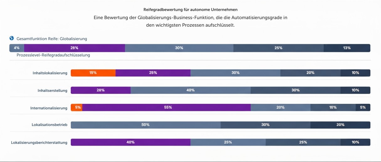 Die Abbildung von Prozessen über dieses Spektrum hinweg bietet ein Maß für unsere KI-Reife und unseren Fortschritt auf dem Weg zu einem autonomen Unternehmen, indem sie sogar Prozesse oder Bereiche identifiziert, in denen Autonomie nicht möglich oder machbar ist, wie zum Beispiel einzigartige, hochkomplexe oder kognitive Prozesse, die KI möglicherweise niemals vollständig automatisieren kann.