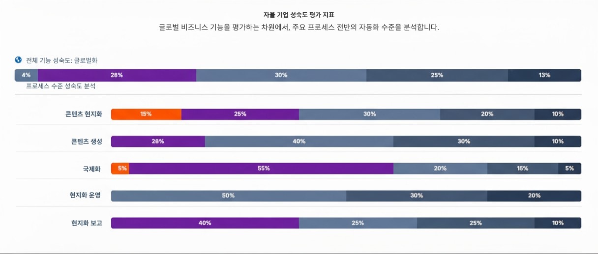 이러한 노력의 결과로 나온 것이 새로운 자율 기업 평가 지표입니다. 이를 통해 프로세스와 비즈니스 부문을 자율성 수준에 따라 평가할 수 있습니다. 이 점수표는 자동화를 전혀 도입하지 않은 완전한 수동 프로세스부터 인간과 AI가 협력하는 AI 보조 프로세스, 그리고 인간의 개입 없이 완전히 자율적으로 운영되는 프로세스에 이르기까지 다양한 수준을 포괄합니다.