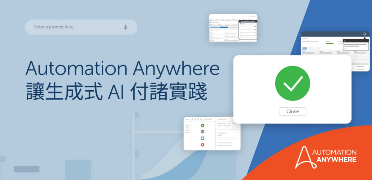 強烈推薦大家觀看自動化 + AI 的隨選重播:現場聆聽我們的合作夥伴 Google 和 AWS 的洞見,並觀看這些生成式 AI 和自動化創新的實際應用。我們非常期待看到 Automation Anywhere 客戶在開始應用生成式 AI 和同類最佳 LLM 的力量時會有什麼樣的成果。若要進一步瞭解如何將生成式 AI 付諸實踐,請至 https://www.automationanywhere.com/tw/products/automation-ai